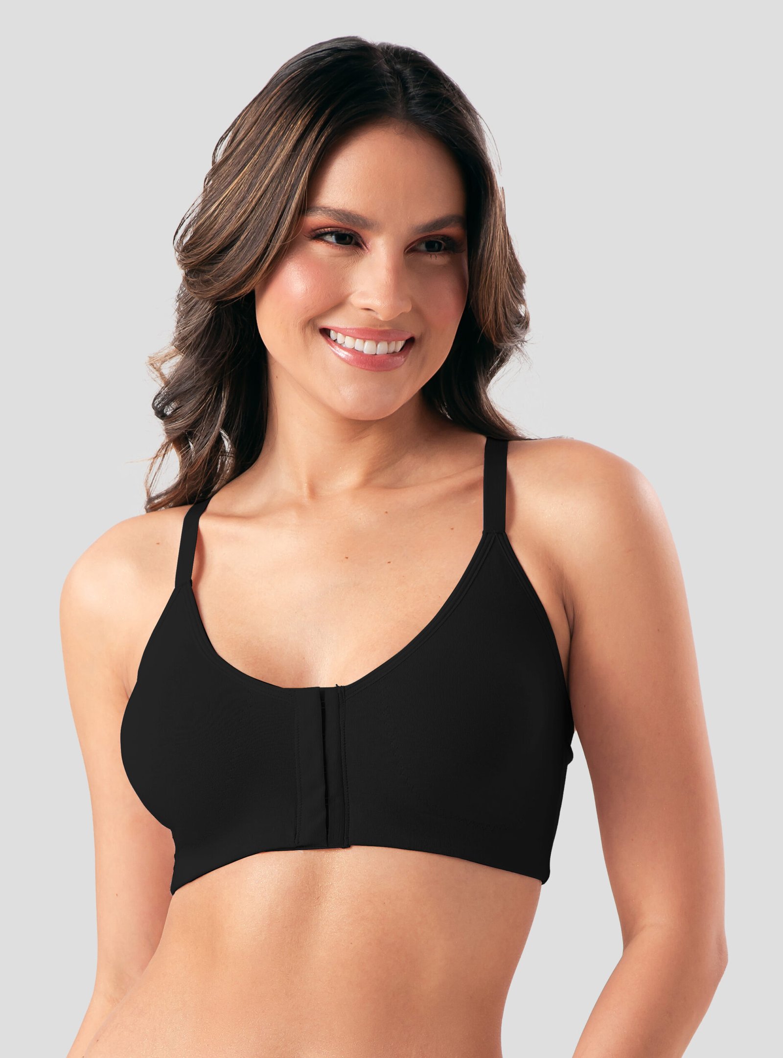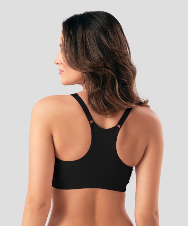 Acompanha o tamanho dos seios confortavelmente Abertura frontal central com tripla regulagem.