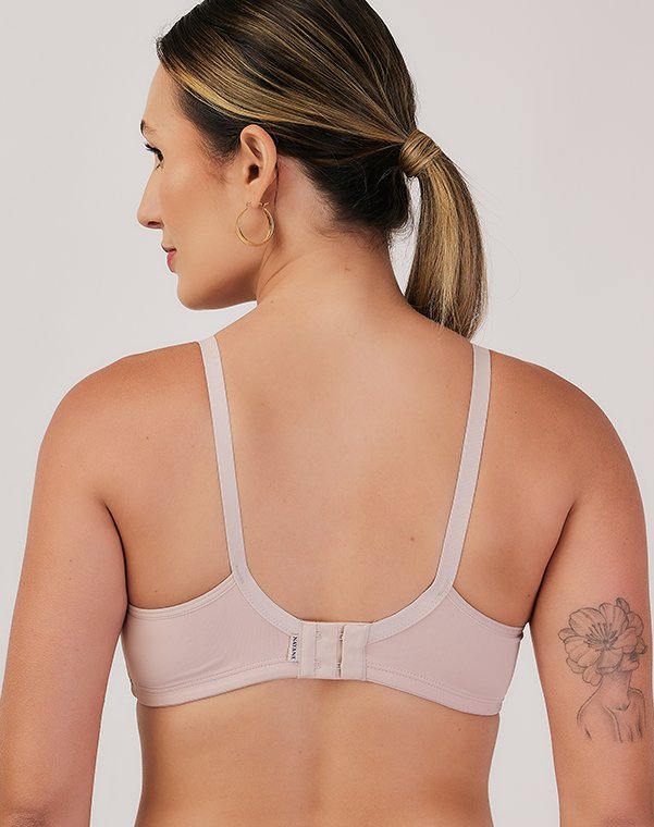 Fecho prático que abre com apenas uma mão Alças médias em algodão com detalhes em renda costas duplas e formato em U Abotoador central com 3 ajustes Valoriza os seios, de forma prática, segura e confortável.