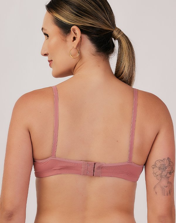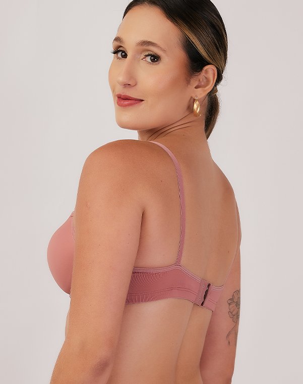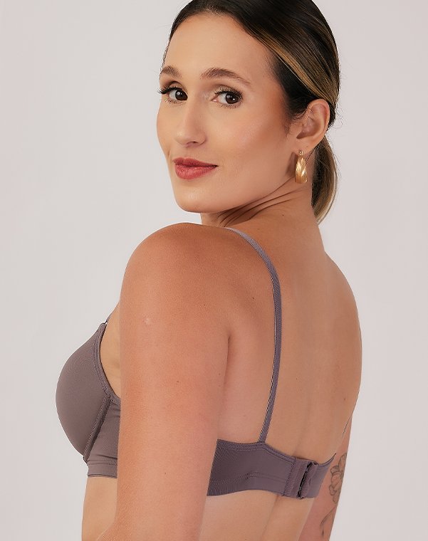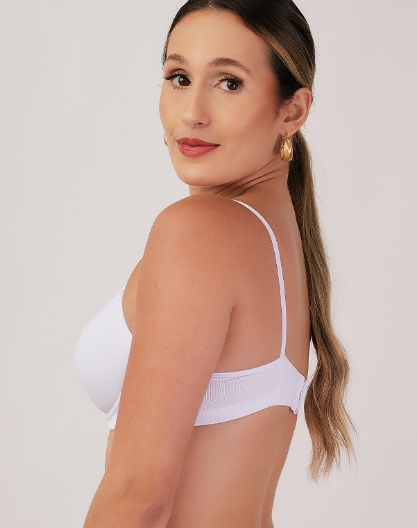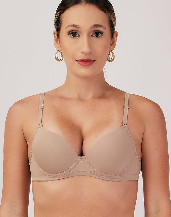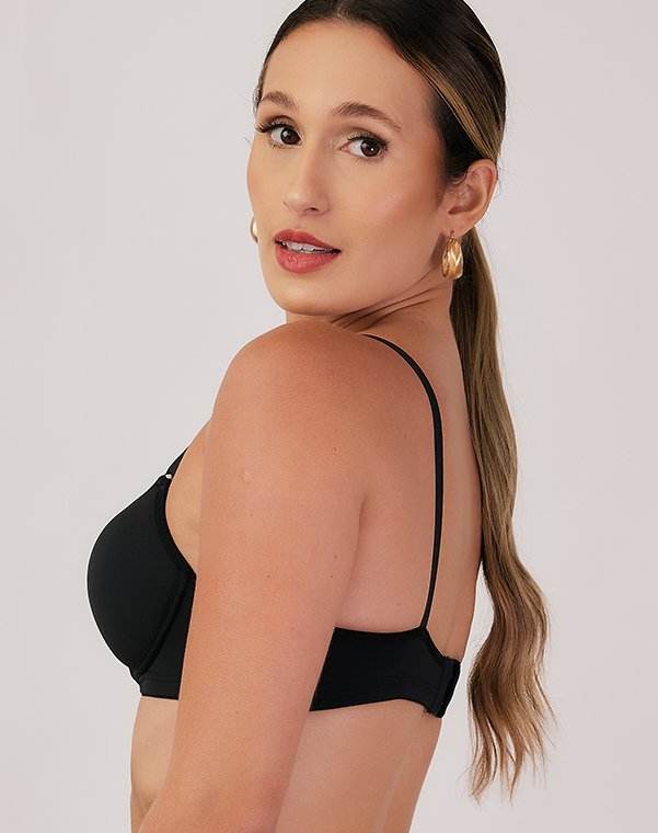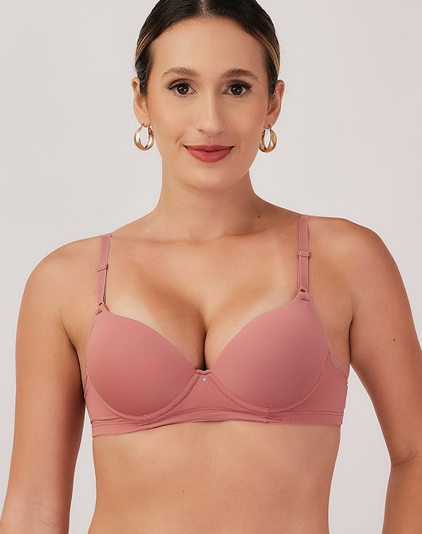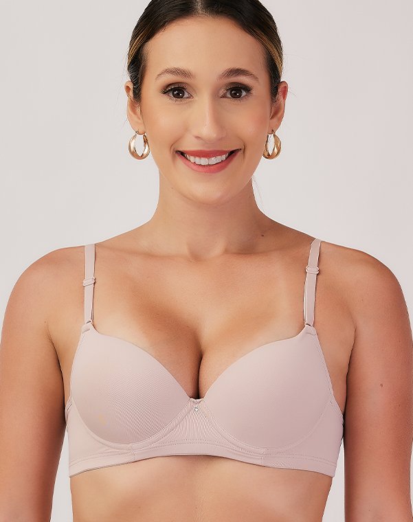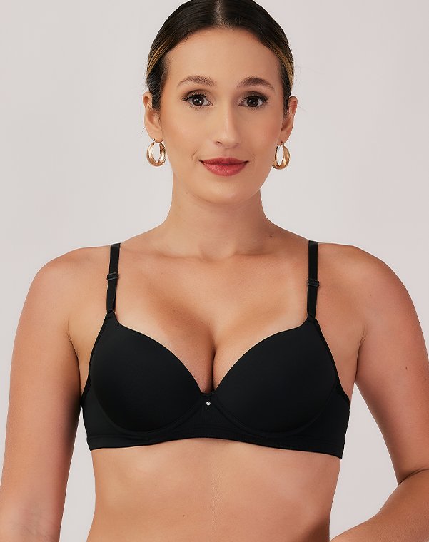 Com aro, possui bojo meia taça, com enchimento bolha, em todos os tamanhos.