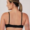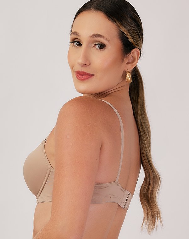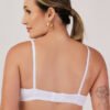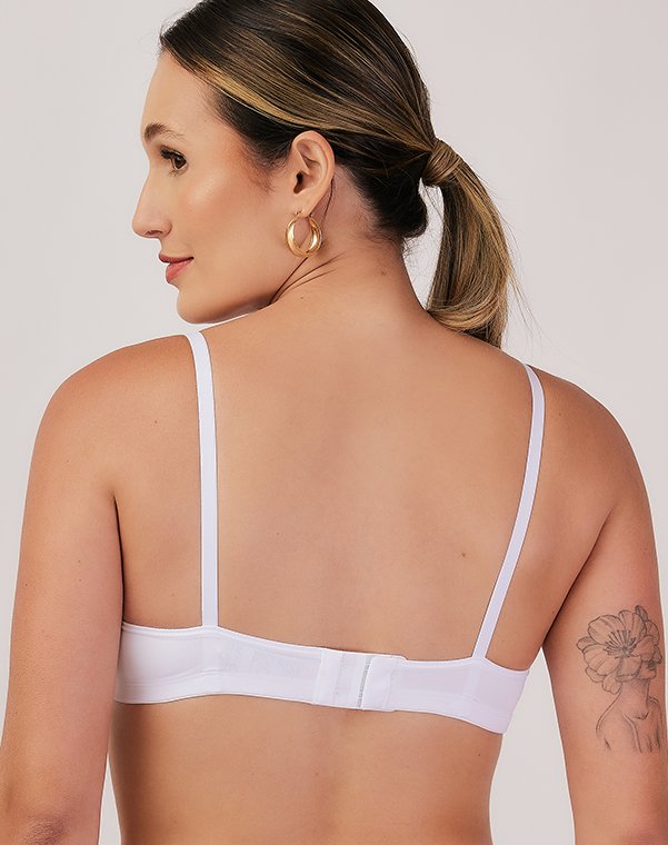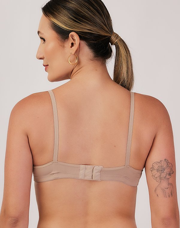 Decote acentuado com acabamento que não marca sob a roupa.