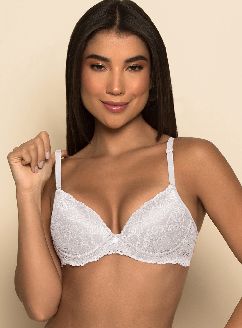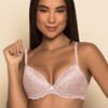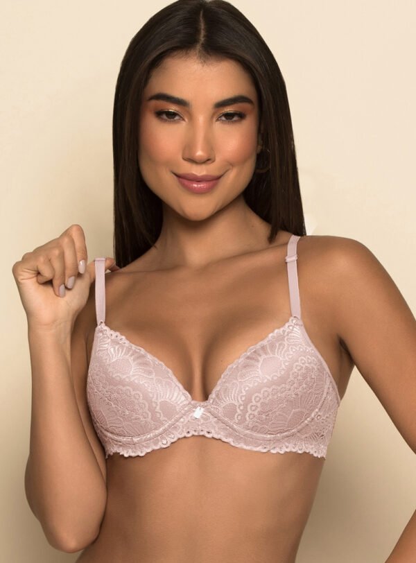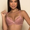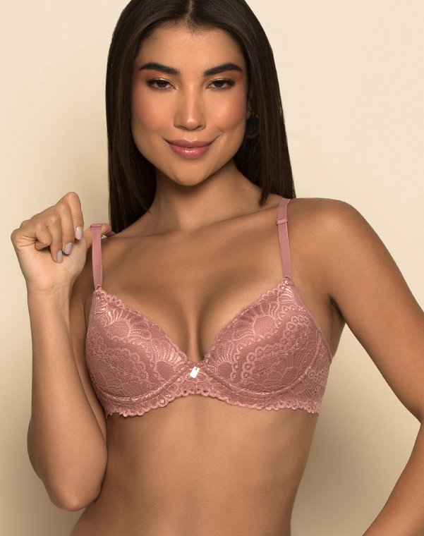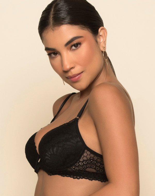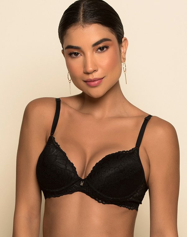 Soutien confeccionando em microfibra, com aro e bojo, rendado no bojo e cós dando charme à peça.